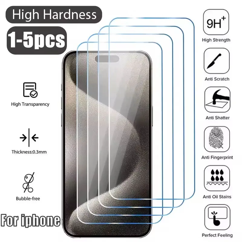 1-5Pcs Tempered Glass for IPhone 16 15 14 13 12 16Pro 16ProMax 11 Pro Max Screen Protector for IPhone 12Mini 13Mini 7 8 14 Plus SE X XS XR Glass