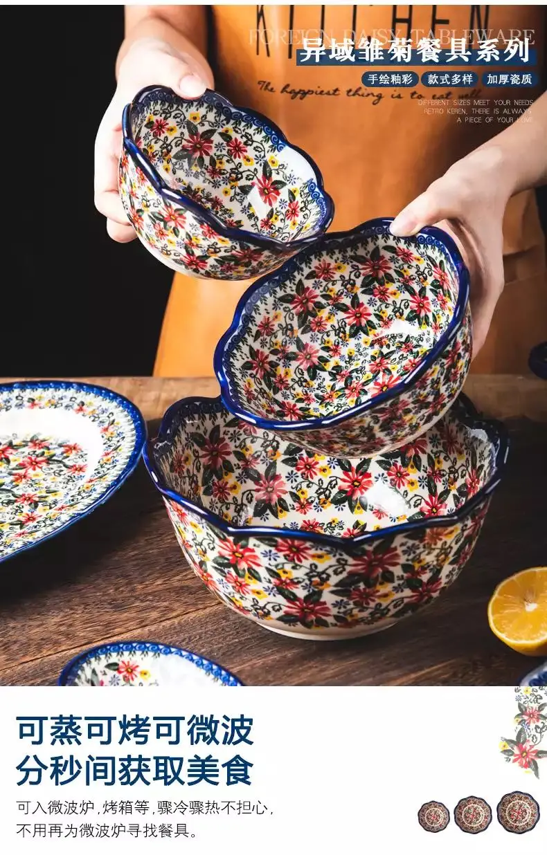 Description: This is a set of ceramic bowls and plates in the Polish style, safe for use and easy to clean. It is applicable for dishwasher,Microwave oven, oven, disinfection cabinet. - Made of ceramic materials, easy to clean. - Craftsmanship handmade, Graceful curve. - High temperature firing ceramics, solid color, and food can be directly in contact. - Anti-skid design on the bottom, more stable and practical.